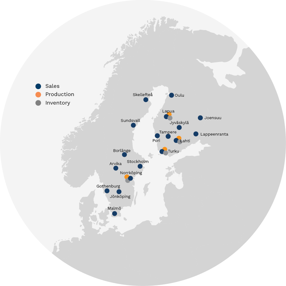 BE Group dates back to the 1800s and is an independent steel distributor that stores and processes steel, stainless steel, and aluminium. Today, BE Group has focused the operations to the two main markets in Sweden and Finland, with sales offices at multiple locations and its own production and warehousing facilities in Norrköping in Sweden and Lapua, Lahti and Turku in Finland. The headquarters is located in Malmö, Sweden, and the company is listed on Nasdaq Stockholm.